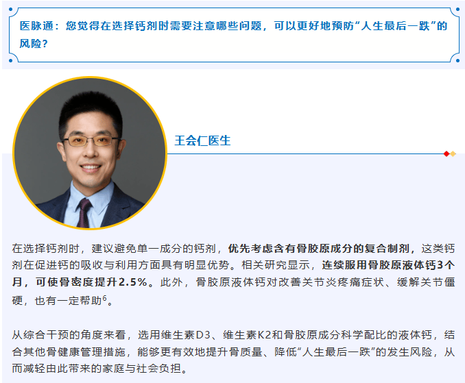 复旦大学从属中山病院骨科副主任医生王会仁建议中老年东说念主取舍含有骨胶原身分的复合制剂