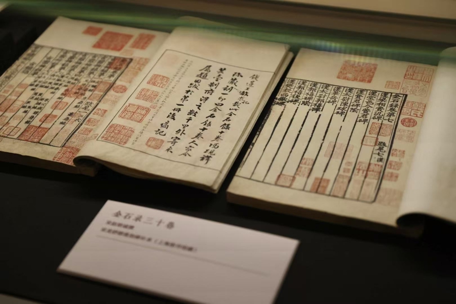 上海图书馆东馆推出的“情比金坚——典籍文献新春特展”同样值得一看。上海图书馆与中国国家图书馆所藏的宋刻本《金石录》跨越千年之后,首次在此合璧展出。《金石录》由赵明诚、李清照合著,是中国古代金石学首屈一指的重要著作。