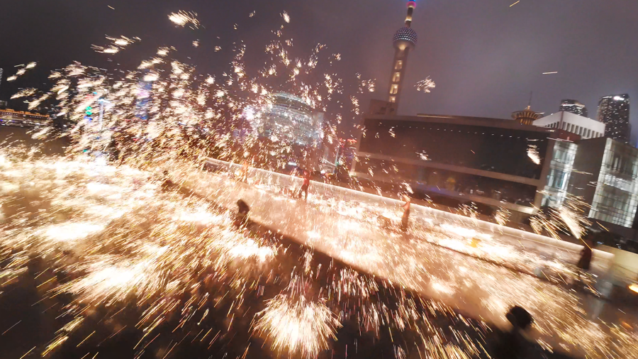 在陆家嘴的摩天大厦之间,满眼中国红正让喜庆的节日氛围扑面而来;紧邻东岸滨江的舞台上,重庆打铁花、广东醒狮、潮汕英歌舞等非遗展演热闹不断,一旁还有汇集经典上海味道和各地特色年菜的“年味长街”,地地道道的年味满溢……