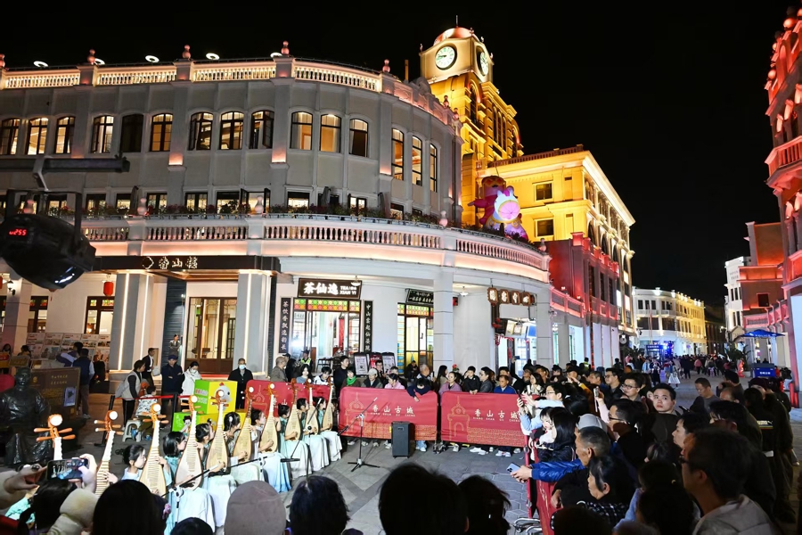 今年1月11日晚,中山市孙文西路步行街香山剧场民乐表演吸引了不少市民。(受访对象提供)