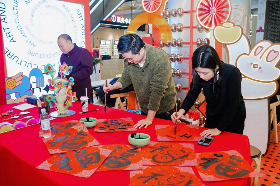 作为“大地情深”虹口红色文艺轻骑兵下基层系列活动的重头戏,此次活动通过打造“可参与、可带走”的文化体验,助力文旅商体的深度融合。走进百联曲阳购物中心,文艺小分队的书画干部现场挥毫泼墨,一副副饱含祝福的春联与“福”字跃然纸上;虹口区非遗项目翻花则以“一翻一变,花形万千”的精妙技艺吸引市民驻足观赏。