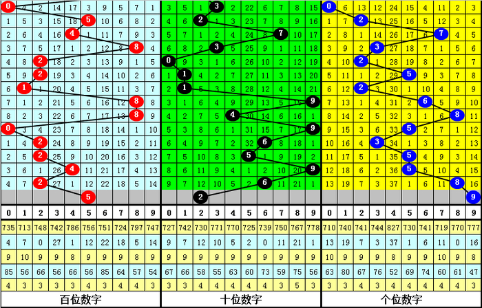 个位:其下期奖号0路有5期,开出频次非常高,本期该位看好0路继续,参考号码9。