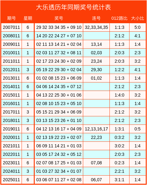 大乐透历年同期数据统计表