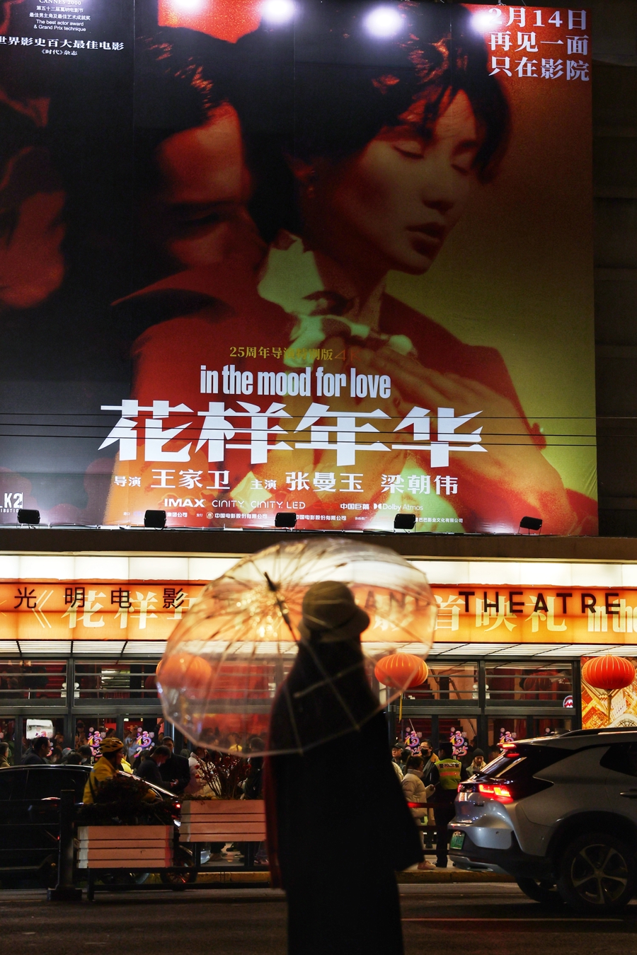 2025年2月12日,上海,在上海大光明电影院举行“重回千禧年”首映派对,影迷以复古装穿搭赴约,旗袍、绅装、千禧年配饰……浓烈的怀旧情怀与时代魅力扑面而来。在首映礼中,近千名影迷提前观看了全新的《花样年华》导演特别版。