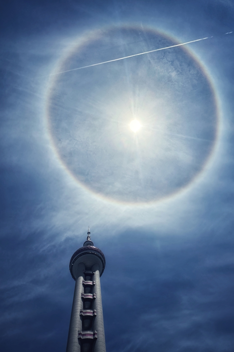 2025年7月2日,上午,申城上空现日晕奇观,仿若“天空之眼”,蔚为壮观。