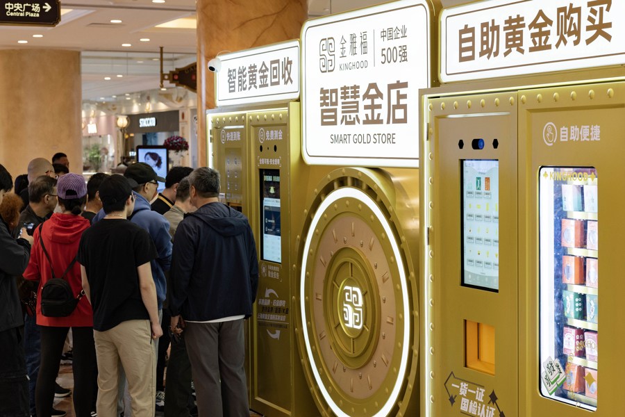 2025年4月21日,上海, 随着黄金价格节节攀升,一商场现黄金回收“ATM”机,回收黄金,现场变现,受到市民的热捧。