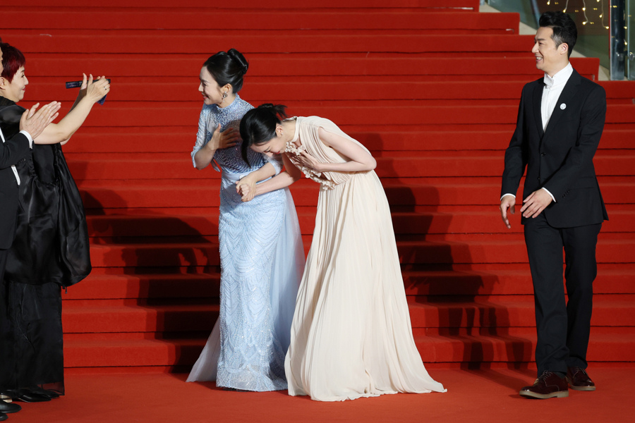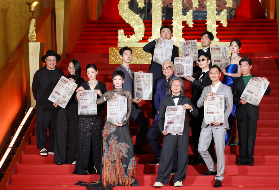 2025年6月14日,上海,第27届上海国际电影节金爵盛典红毯闪耀申城。电影节开幕影片《酱园弄·悬案》剧组导演陈可辛、主演章子怡领衔走上红毯。