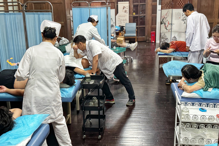 2025年8月8日,上海,医院忙碌的中医治疗室。