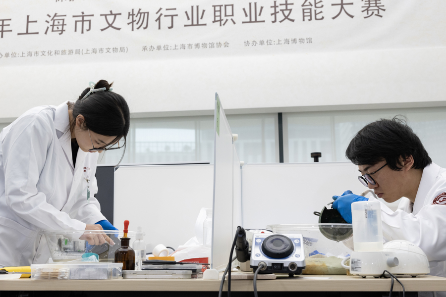 2025年3月26日,上海,上海市文物行业职业技能大赛在上海博物馆东馆启动,22名文物“医生”秀技能。