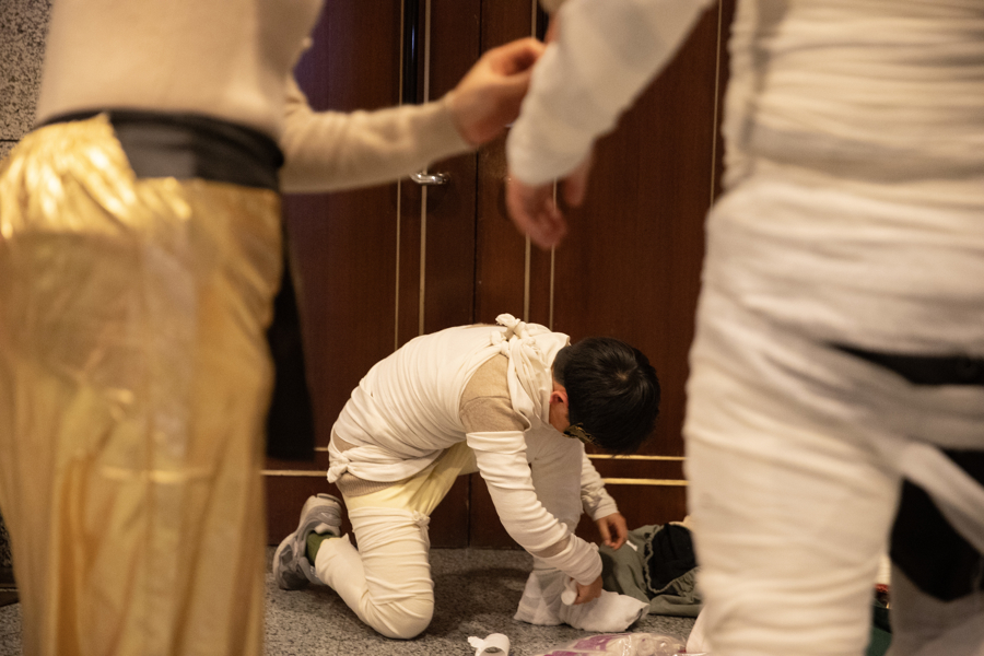 2025年1月1日,上海,上海博物馆跨年奇妙夜,装扮成木乃伊的家长和孩子。