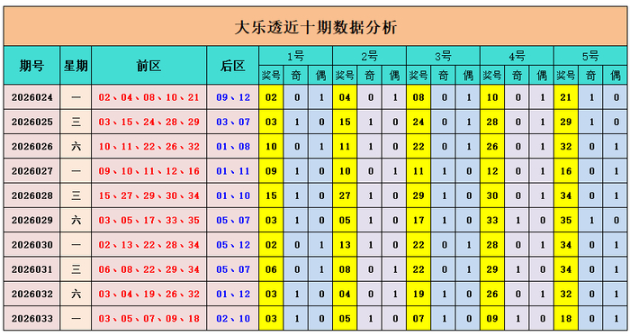 上期回来:大乐透第2026033期奖号为:前区03、05、07、09、18,后区02、10,前区奖号和值为42,后区开出小大组合02、10