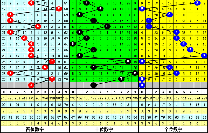 现在百位最冷号码为9,现时遗漏70期,该号码历史最大遗漏为70期,本期百位防号码9解冻。