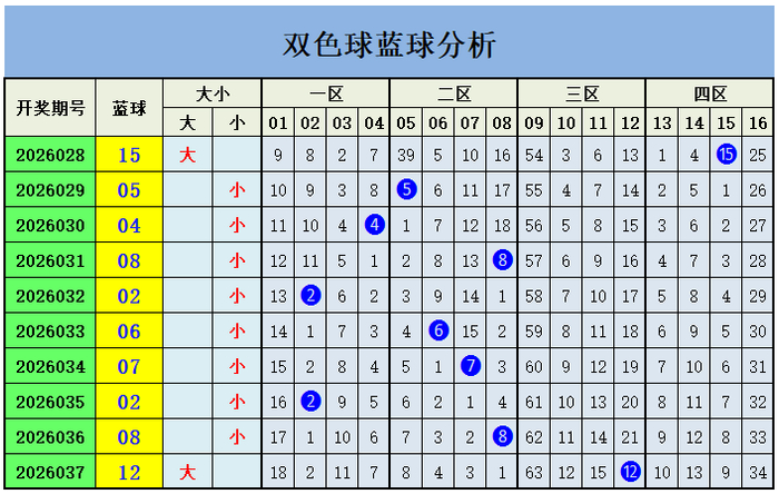 最近10期蓝球开出号码,四区比为:3:5:1:1,上期开出三区号,本期关爱四区出号。保举号码:15