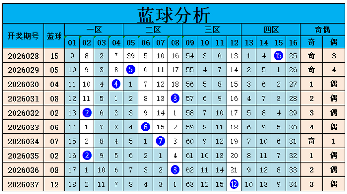 山哥双色球蓝球详细分析: