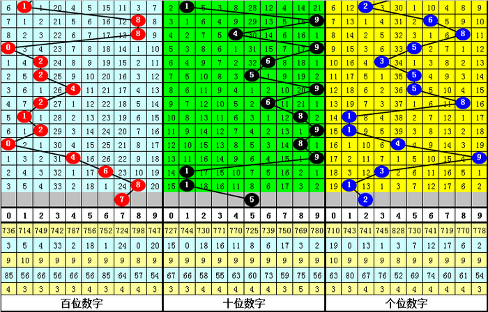 百位分析:该位最近10期出现范围在0-8之间,波动了9个点位,波动范围较大,上期开出号码8,上升了2个点位,本期看好该位号码下降。另外该位最近10期大小比为2:8,大号走冷,本期看好大号回补,参考号码7。