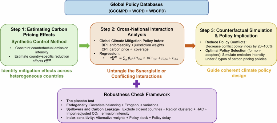 在复杂的局势管制体系中,政策的真确已矣络续受到政策交互的深切影响。举例可再生能源补贴可能会因缩小碳配额需求而压低碳价,减弱碳阛阓的养息功能。然则由于列国政策环境的高度异质性,传统的计量要领难以对政策的交互已矣进行精确比拟与识别。
