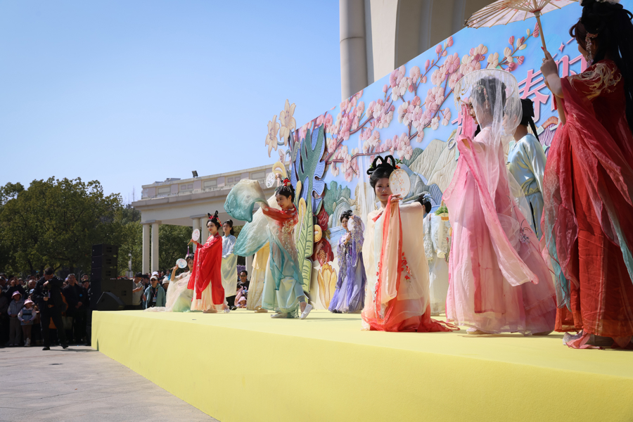 图为:静安花朝节启幕,身着传统衣饰的十二花神登台亮相。